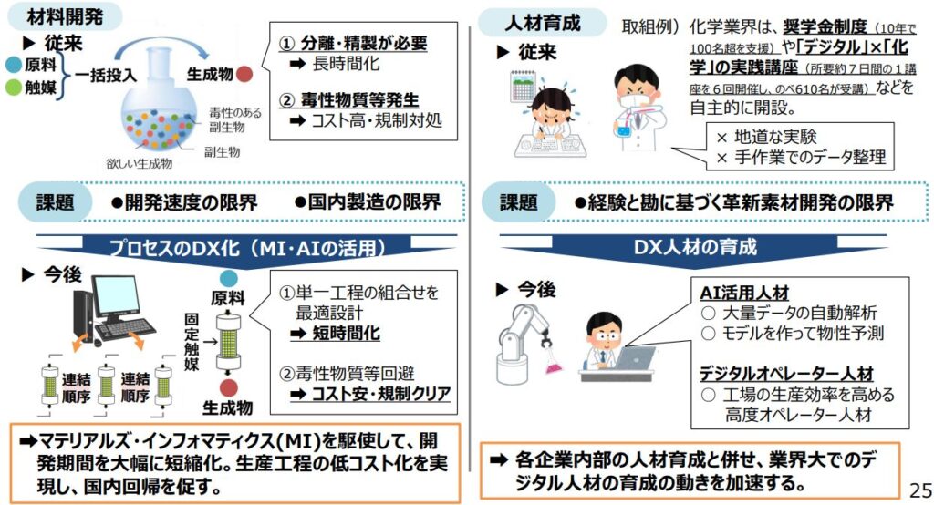 - 研究・開発効率の向上:AIやシミュレーションで開発スピードを加速