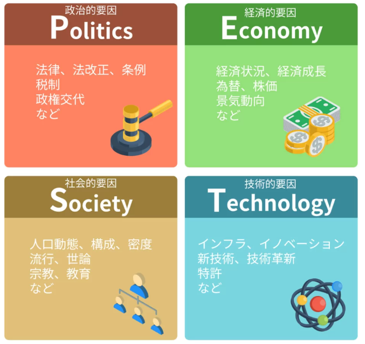 市場や環境を読みたい | PEST分析/5フォース分析 | 外部環境分析 | 政策・技術・市場変化を把握して機会を見つける |