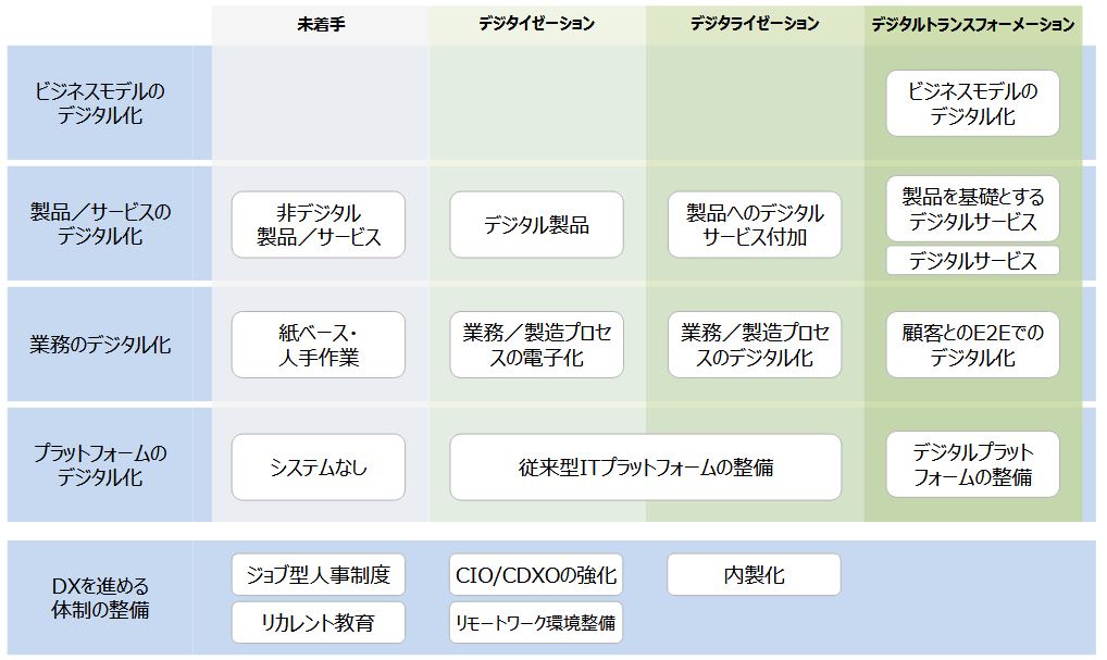 DXフレームワークは、企業のDXを次の3段階で整理しています。