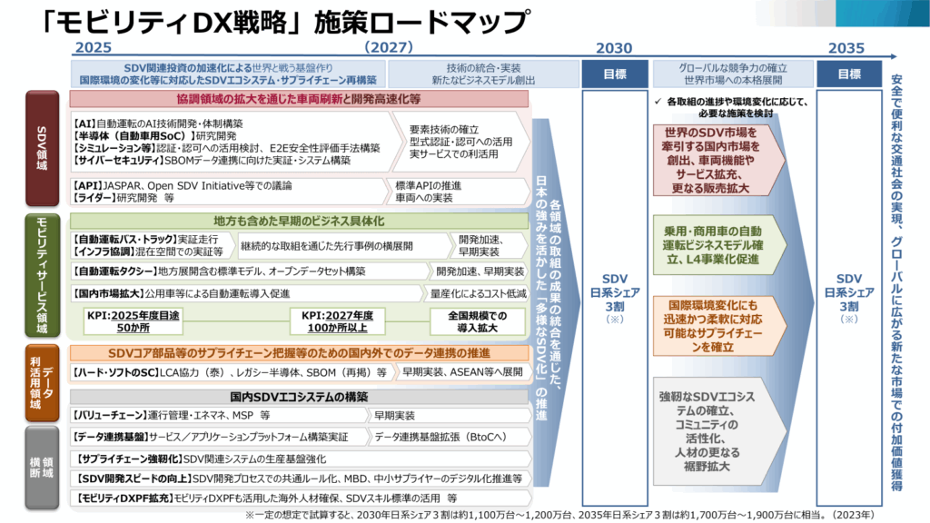 簡単に言うと、「デジタル技術で日本のモビリティ産業を進化させるための国家レベルの戦略」です。