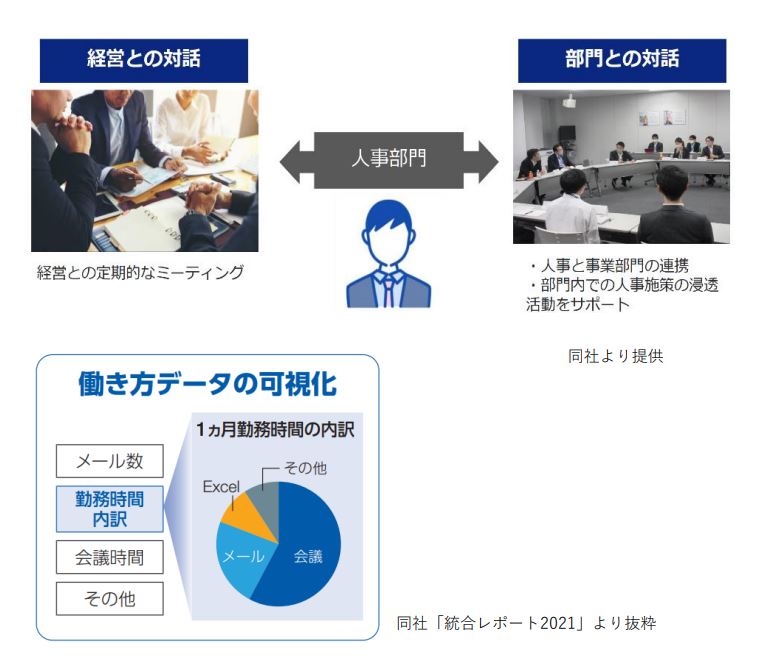 さらに、社内には「ピープルアナリティクス部門」を設置し、社員のスキルやキャリア志向といったデータを収集・分析し、最適な人材配置や育成計画を策定しています。