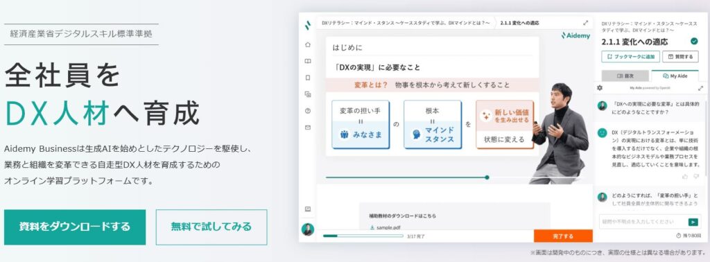 AI/DX人材育成e-learning「Aidemy Business」の資料を見る
