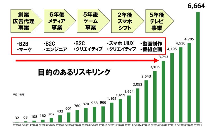 同社では、事業の成長スピードに合わせて必要なスキルを定義し、数年ごとに社内外のリソースを組み合わせたリスキリングプログラムを実施しています。