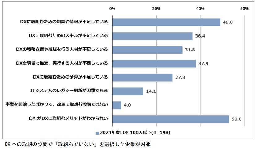 以下は、DXに取り組んでいない企業の理由です。